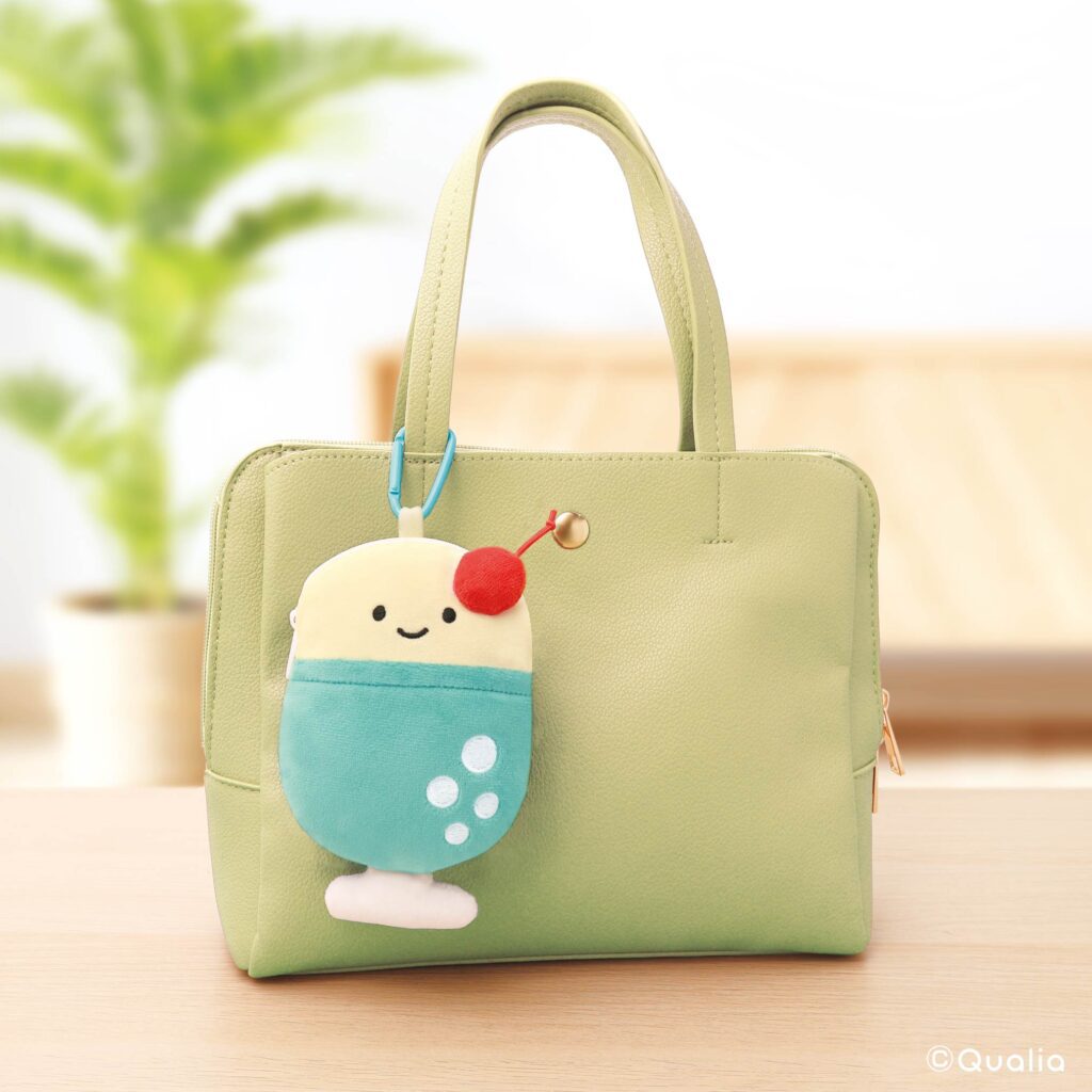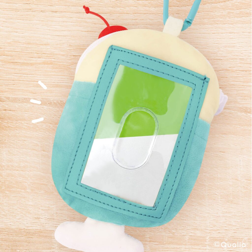 クリームソーダぬいぐるみポーチ・パスケース 高さ140mm・カラビナつき仕様