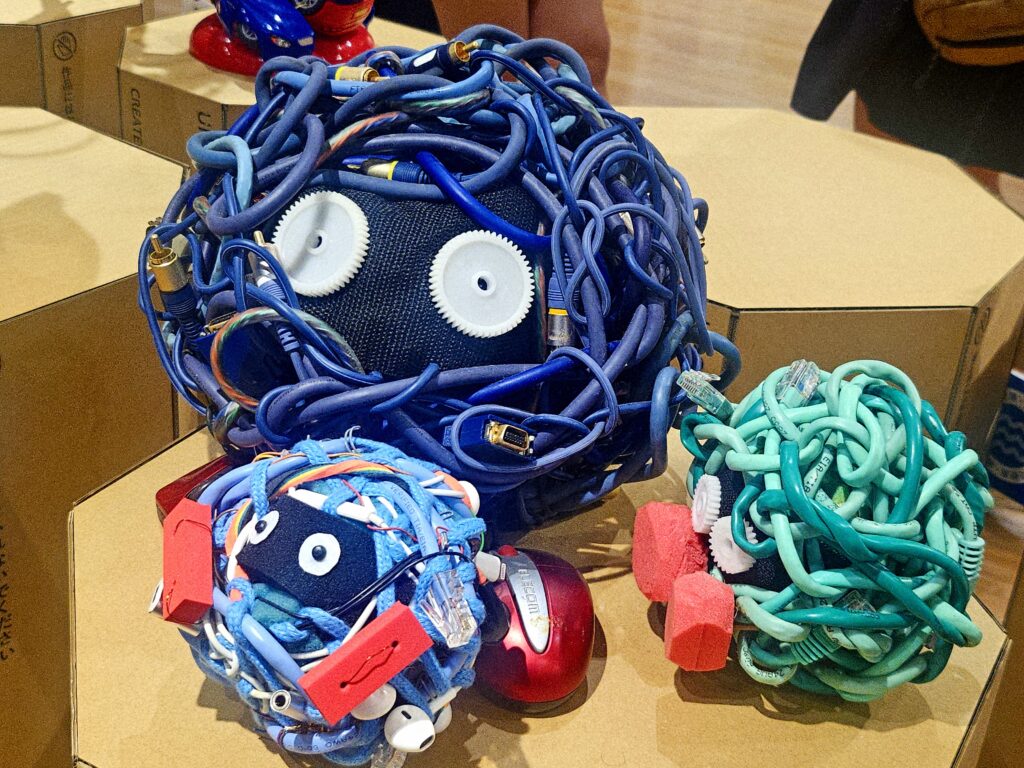 Summerが激推ししてたのがモンジャラ! モンジャラって、つるや糸が体から伸びてるポケモンなんだけど、なんとケーブル(コード)を使って表現されてたんだよ! 「コードって変幻自在だね…!」ってしみじみしちゃった✨ ケーブルのくねくねした形がモンジャラの特徴にぴったりハマってて、「これ考えた人、天才すぎる!」って大興奮だったよ🎊