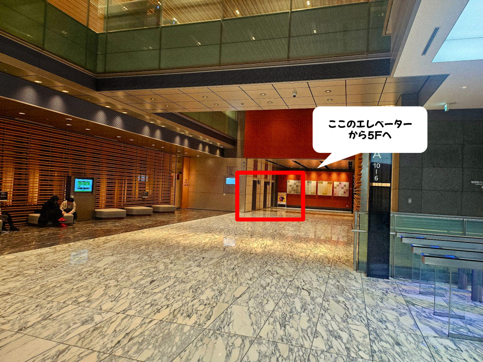 東京ミッドタウン1階の奥にあるエレベーターに乗って、そのまま5階へGO! エレベーターを降りると「東京ミッドタウン・デザインハブ」が目の前に広がるよ。入場無料の東京の無料イベントとして、ふらっと立ち寄れるのが嬉しいポイント🙌