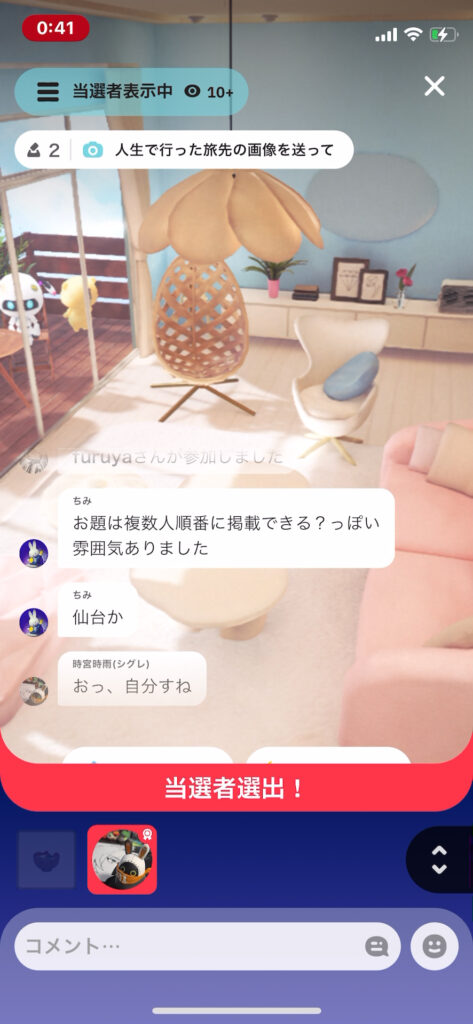 配信してる人は画像の共有もできるから、ラジオ+αのコンテンツとして楽しむのもアリだね📻もちろん、知らない人への配信じゃなくて、友達同士の通話アプリとしても普通に使えるよ!