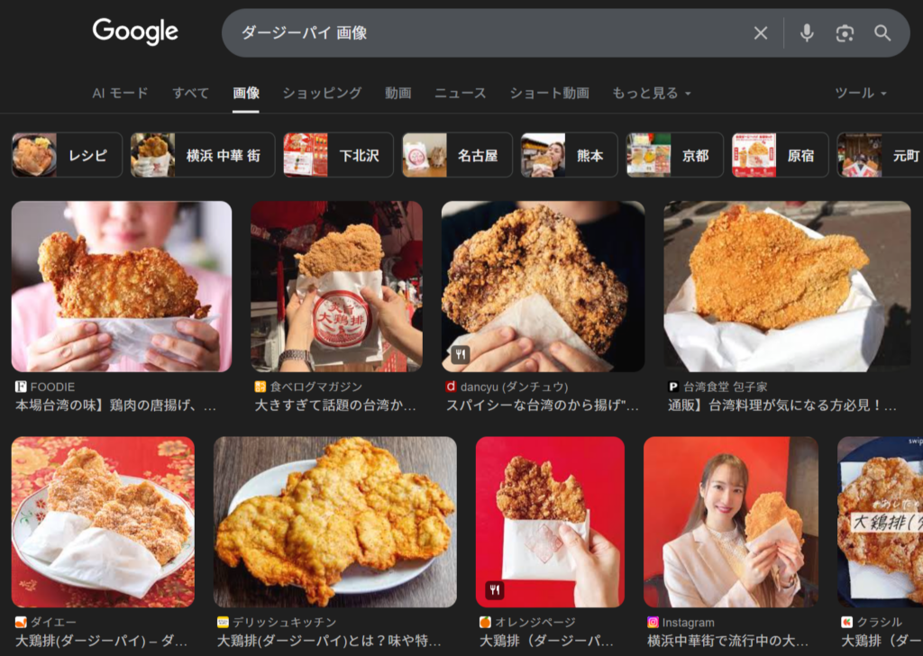 ダージーパイは、台湾特有のスパイシーな香りが食欲をビンビンに刺激してくるフードらしい👀なんか画像検索すると結構大きい気がする🤤